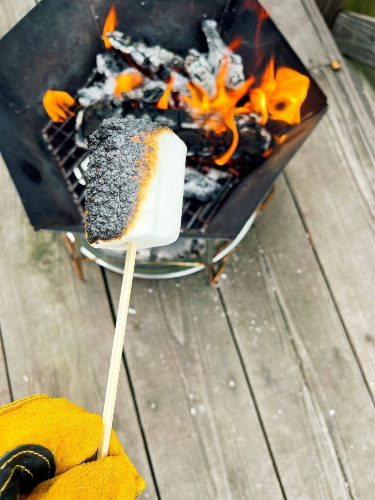 これもやってみたかったことの一つ、「焚火で焼きマシュマロ」!