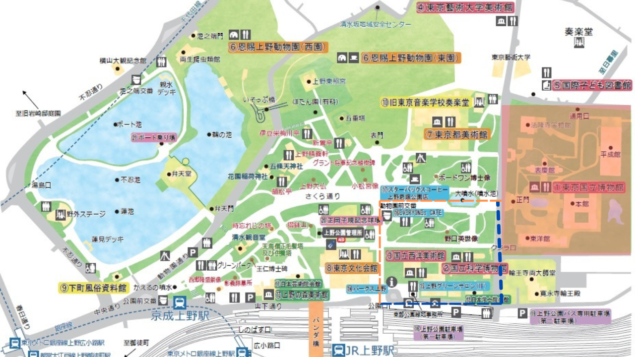 東京国立博物館は上野駅から歩いて5分程度でつきます。